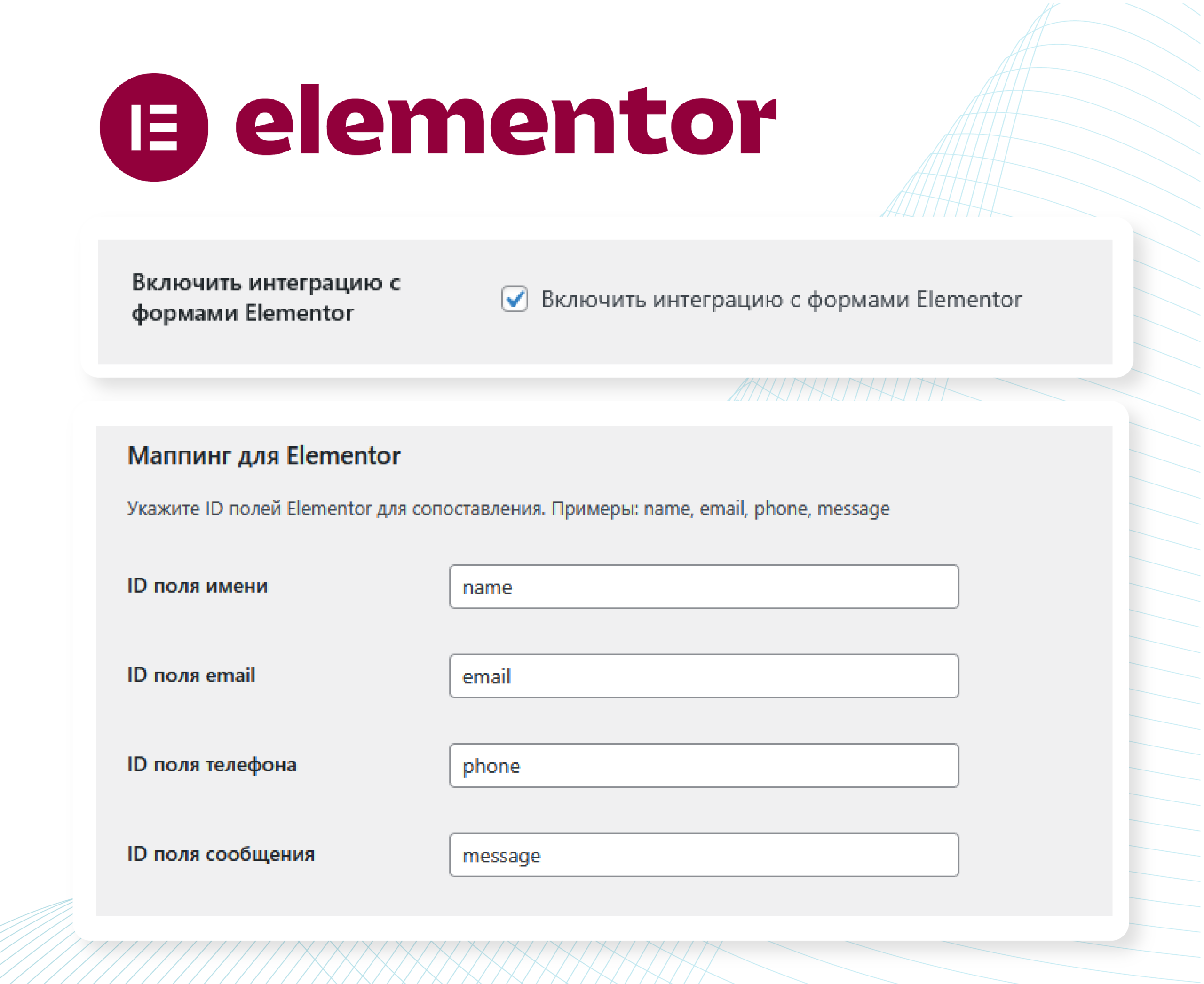 Работает с Elementor, Contact Form 7, WPForms и WooCommerce без дополнительных модулей. Всё готово сразу после установки.