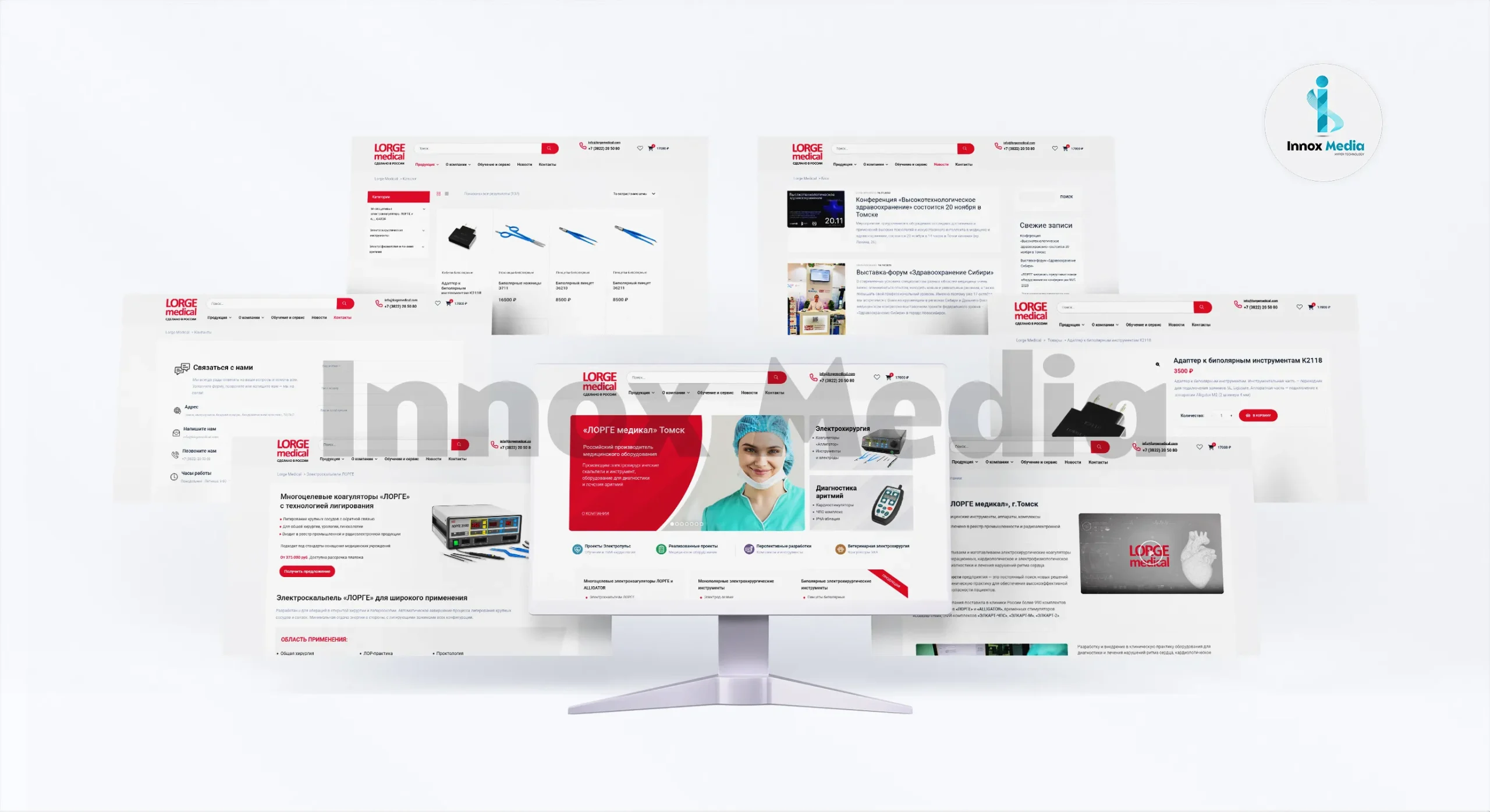 Lorge Medical обратилась к Innox Media с просьбой выстроить масштабный корпоративный сайт‑каталог, где смогут быть представлены технические детали каждого направления: хирургия, кардиология, электрофизиология и ветеринария